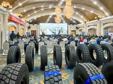 在产品层面,本次会议重点推介了拳头产品、大马力商用车系列产品及电骋系列产品。其中,拳头产品凭借稳定的性能表现,成为渠道客户现场预订的热门选择;而面向新能源商用车市场的电骋TBR系列,则从技术上有效提升磨耗性能与防偏磨性能,降低故障率,同步提升车辆续航里程,为用户提供真正的新能源商用车专用轮胎。
